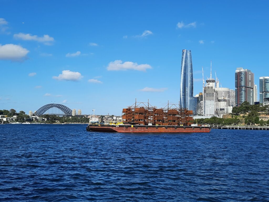 Sydney assembly and launch, using one of our large capacity barges, Kochi (210T lift capacity)